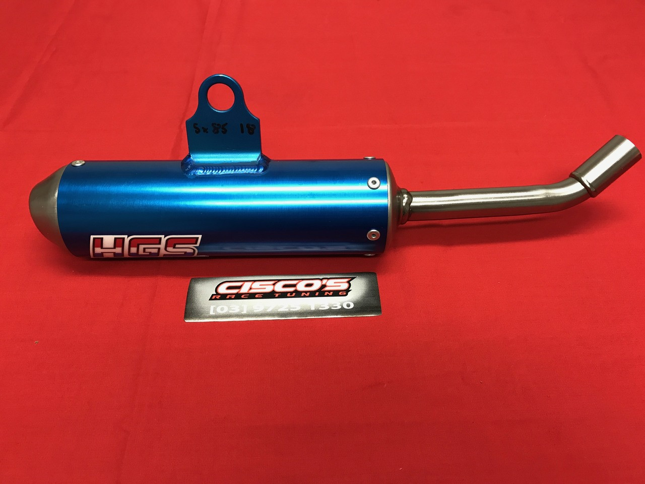 HGS muffler in anodised blue for the 2018 model onwards Husqvarna TC85. HGS Exhausts are used by champion riders all over Europe and the world to increase performance in all types of track conditions. As a Dutch manufacturer HGS are very conscious of high running temperatures due to the infamous sand tracks of Holland. HGS are continually working towards maximum performance.We have fitted and ran many HGS systems over the years and the build quality (all hand made in Holland), fitment, reliability and performance is second to none!